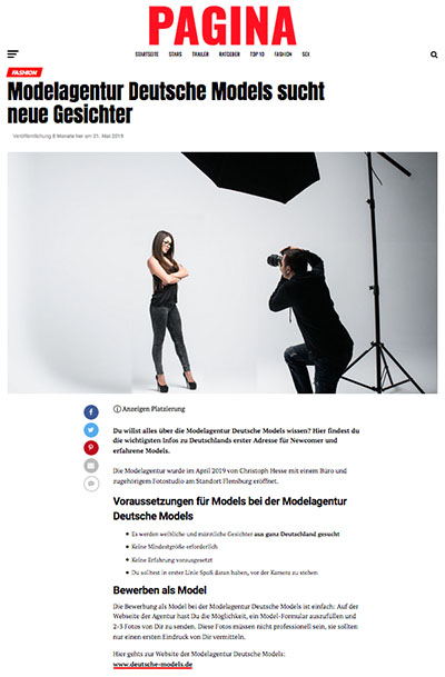 PAGINA.de ist das Promi & Ratgeber Magazin aus Flensburg. Unsere Redaktion transportiert die Trends unserer Zeit auf unterhaltsame und gleichzeitig inspirierende Art. Dieses spiegelt sich in top aktuellen Themen rund um Stars & Ratgeber wider. Und wir sind auf Wachstumskurs: Laut Majestic Million gehört unser Promi- & Ratgebermagazin PAGINA.de zu den 3000 am meisten verlinkten deutschen Internetseiten.